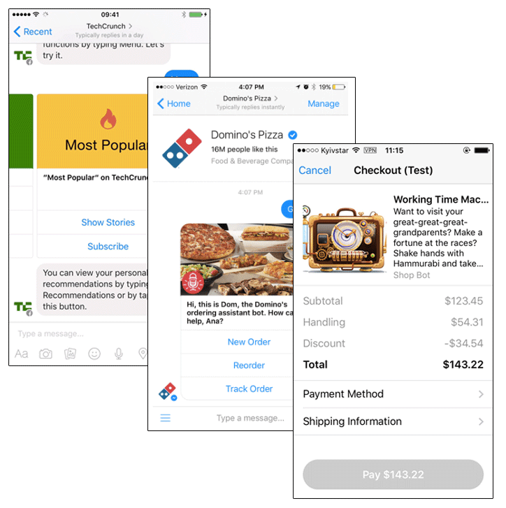 A Messenger bot can converse with your customers using open text or buttons, show images and videos, and even taking payments all via the chat interface.